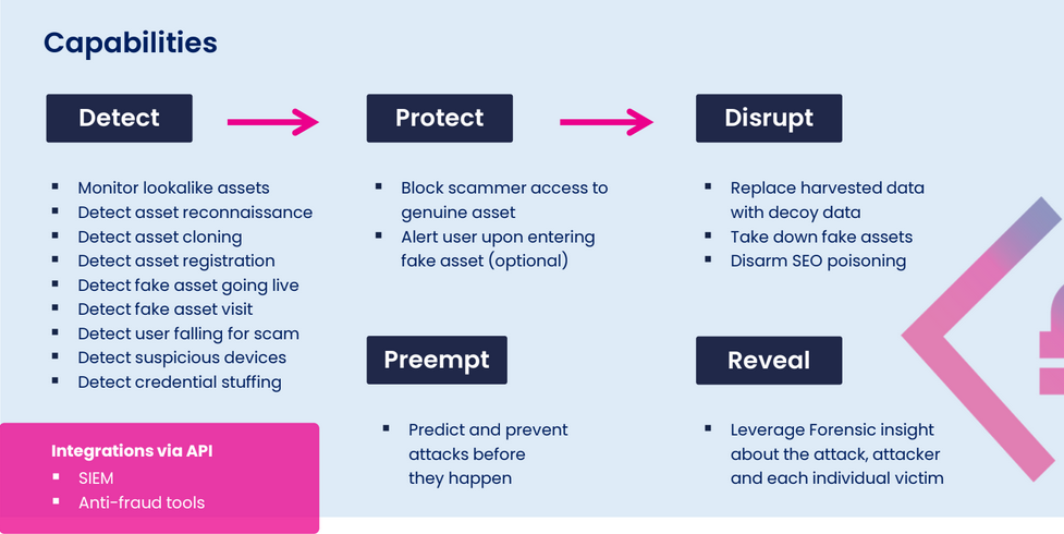 In addition to Memcyco’s real-time detection and protection capabilities, Memcyco customers also gain the ability to proactively disrupt attacks.